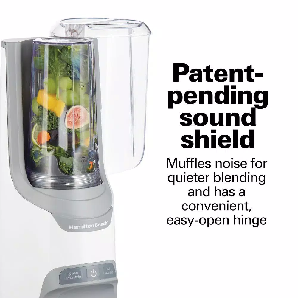 Experience high-performance blending in a compact design with the Hamilton Beach Power Blender Plus. The 800 watt peak-power motor, stainless steel blades and 20 oz. jar with SureBlend technology handles even the toughest frozen ingredients with smooth results. The timed Smoothie setting is optimized for mixing frozen fruit and ice, while the Green Smoothie function ensures leafy greens are blended to a smooth, drinkable consistency.