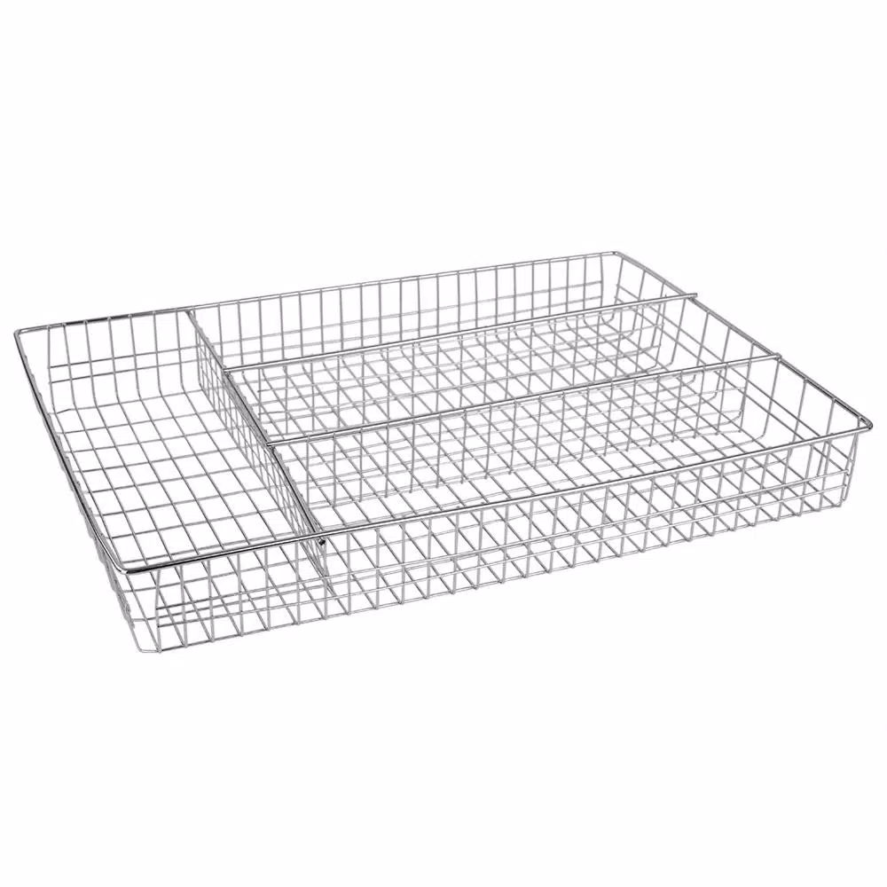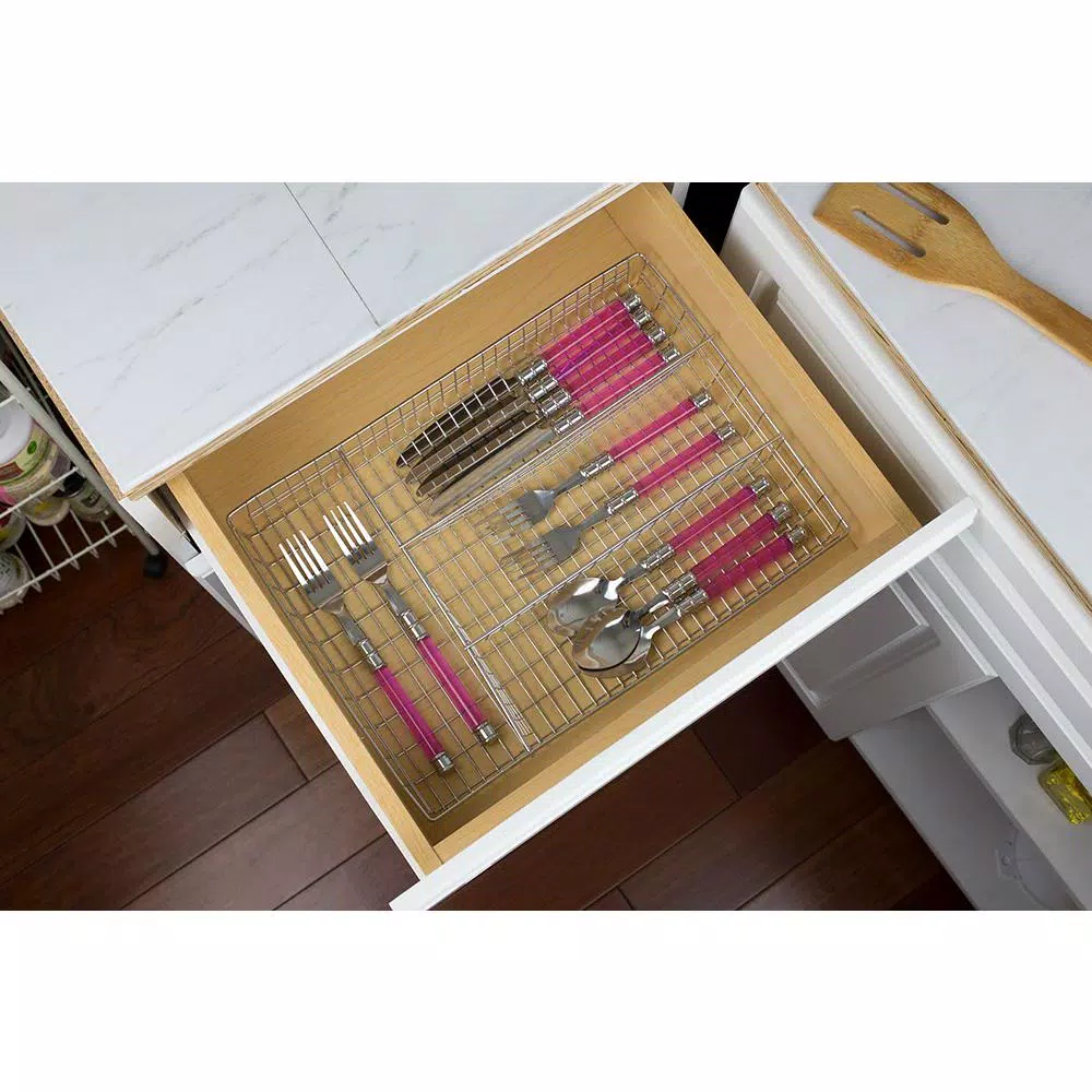 Complement your exquisite silverware and finest cutlery with this metal cutlery tray. 4 compartments provide ample space to neatly organize utensils, silverware and more. The chrome plated steel construction and gleaming finish provides the perfect mix of timeless design and superb functionality. Whether you need a striking accent to your deep mahogany cabinets or a sturdy holder to cradle your elegant collection of cutlery in your warm oak drawers, this lightweight and sturdy holder provides the perfect kitchen organization solution to satisfy your needs.