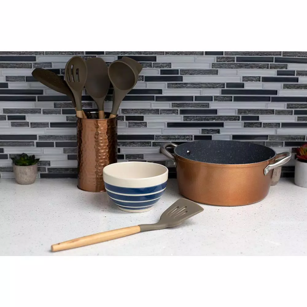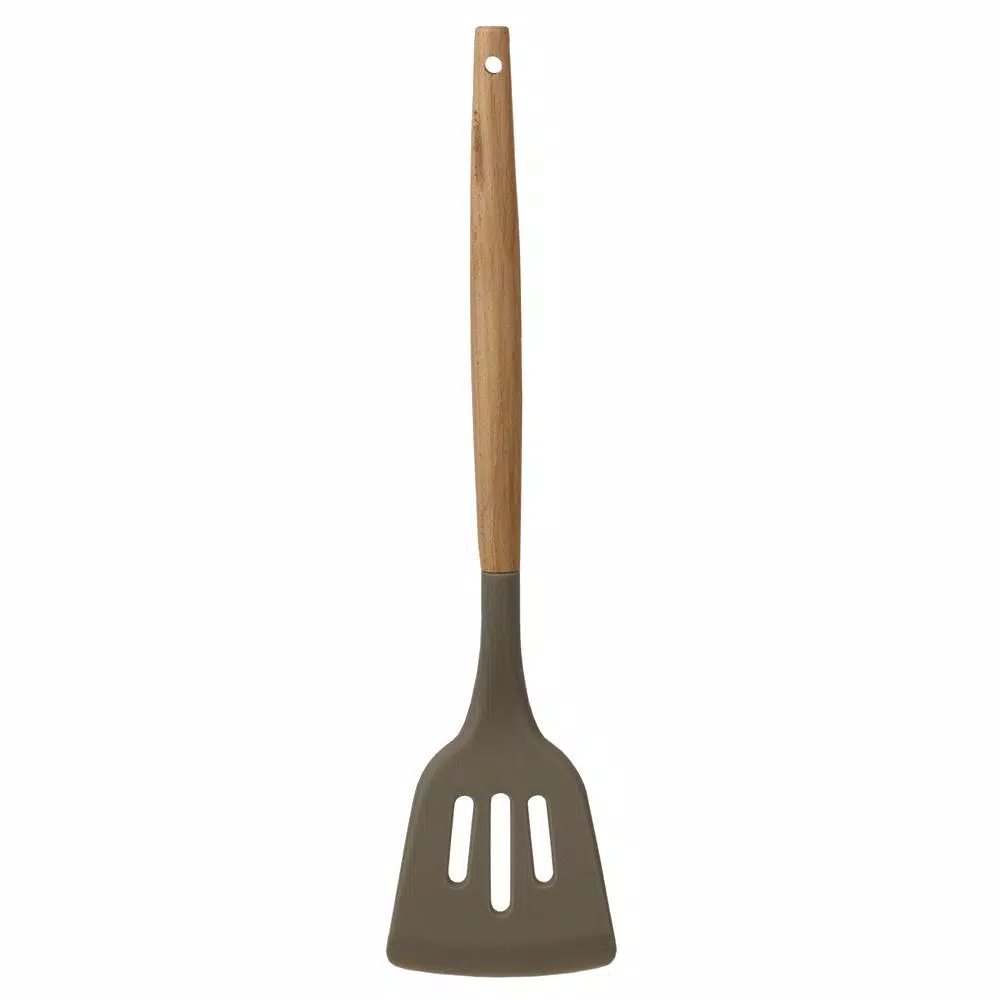 The beauty of natural beech wood with the high-heat resistance of premium food grade silicone, this utensil is both a functional and stylish addition f or both home kitchen and restaurant use. Great f or flipping pancakes off the griddle to turning burgers and fish off the grill or skillet. The smooth beech wood handle offers a comf ortable grip, while the flexible and soft silicon blade slides eff ortlessly while still being stiff enough to stabilize food when flipping or transferring from pan to plate. Hanging hole in handle f or easy st orage
