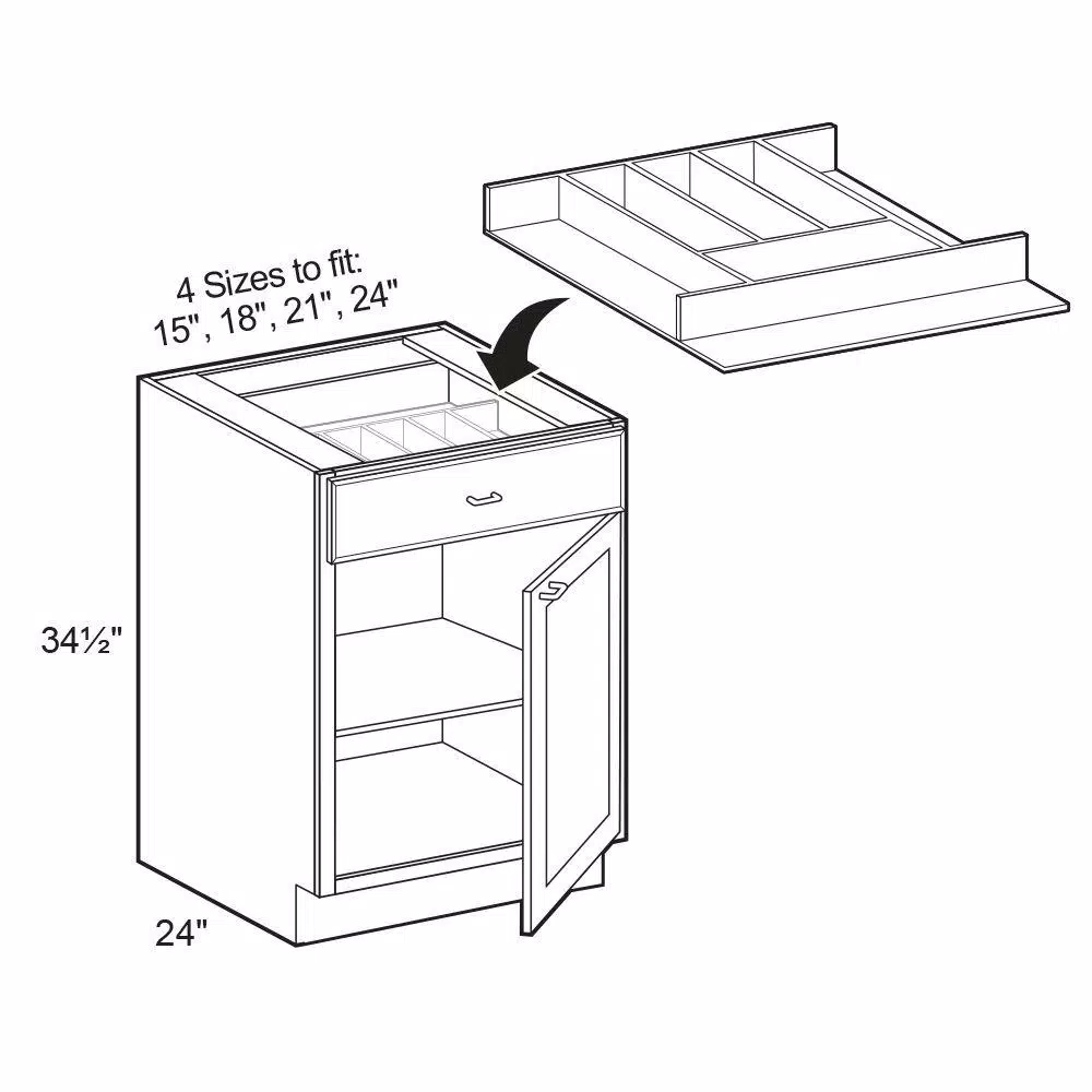 Home Decorators Collection cabinet inserts help organize your drawers, so everything is easily at hand. Solid hardwood divider tray has individual compartments to organize your cutlery. Sized to fit 21 in. drawer. Bonus full width compartment suitable for longer utensils. The subtle tones of the natural wood grain are enhanced by a durable clear coat finish for a polished look.