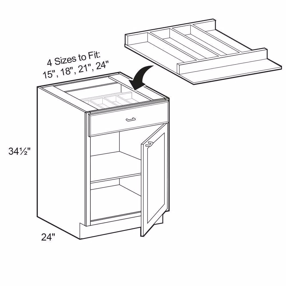 Home Decorators Collection cabinet inserts help organize your drawers, so everything is easily at hand. Solid hardwood divider tray has individual compartments to organize your utensils. Sized to fit 21 in. drawer. Bonus full width compartment suitable for longer utensils.