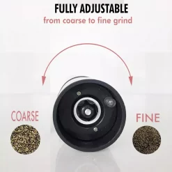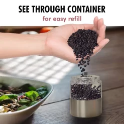- Simple to set up and easy to use, just press the top button to automatically grind and adjust the coarseness of the spice from the bottom of the unit