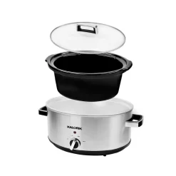 Discover the ease and efficiency of one-pot cooking and cook hearty, homemade meals with little to no effort. With the KALORIK 6.5 Quart Slow Cooker, you can simply add your ingredients to the pot, select your setting, and let the appliance do the work for you. The KALORIK 6.5 Quart Slow Cooker cooks food slowly and steadily to achieve tender, flavorful results similar to braising. It’s great for pot roast, chicken, pulled pork, brisket, chili, soups, stews, corned beef, mac and cheese and more. The removable stoneware and glass lid are dishwasher-safe, making for easy cleanup. This eco-friendly appliance is energy efficient, for environmentally-conscious cooking. A Warm setting keeps food at optimal serving temperature until ready to eat, while a 6.5-quart capacity yields large and family-style portions.