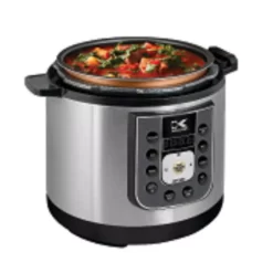 The Kalorik Black and Stainless Steel Perfect Sear Pressure Cooker can be used as a pressure cooker, slow cooker, steamer and more. Use this versatile 6.25 Qt. unit to prepare roasts, beans, or stews. Pressure cooker can be set to high or low as well as the 7 presets for a hassle-free experience. Use the automatic keep-warm feature to keep your meals heated; use the delayed start function to prepare meals while you are at work, school, or on the go. And for safety the Kalorik Black and Stainless Steel Perfect Sear Pressure Cooker has 7 safety levels built in.