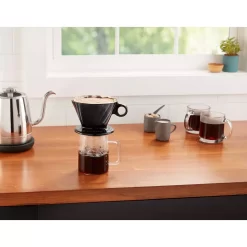 Manually brew a cup of pour over coffee with this 4-cup cone. Simply add your standard wedge-shaped cone filter and preferred grounds and pour a slow, steady stream of water over the bed of coffee. Made from vitrified ceramic to resist staining, chipping and cracking. Dishwasher safe.