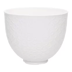 Accessorize your stand mixer with a beautiful 5 Quart White Mermaid Lace Ceramic Bowl for all of your mixing, whipping and kneading tasks. Inspired by a traditional Japanese fish scale pattern, this 3D-embossed design is finished with a reactive glaze that changes the color’s intensity to accentuate the pattern. This bowl is freezer, microwave, dishwasher, and oven -safe, and made with titanium-reinforced ceramic to resist chipping, cracking, crazing and staining. Fits all 4.5 and 5 quart tilt-head stand mixers.