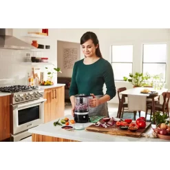 - 5 cup BPA-free work bowl and 2 speed settings to mix, chop, puree and whip a variety of dishes from a chunky pico de gallo, to a hearty hummus, whipped cream and more
