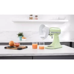The KitchenAid Citrus Juicer stand mixer attachment will allow you to quickly and easily extract juice from the smallest lime to the largest grapefruit. A special strainer helps trap pulp. Glass after glass and year after year, you will be able to enjoy your favorite juices without leaving your home.