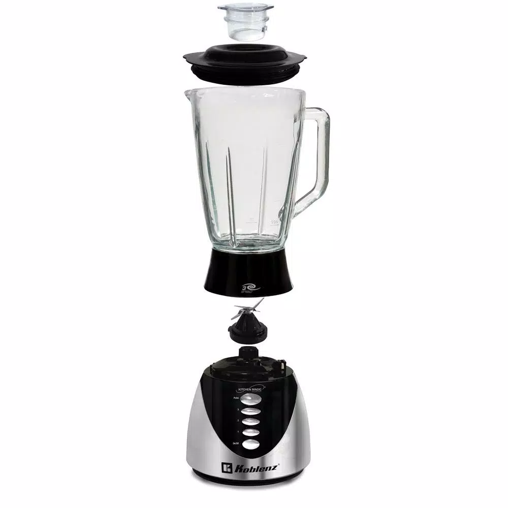 The Koblenz 1.5 Liter Kitchen Magic Collection 3-Speed and Pulse Glass Jar Blender features a 400-Watt motor and 2-year limited warranty. Measurement indicators such as liters and ounces on the jar with 4-stainless steel blades. This Koblenz blender is ideal for all your blending needs.