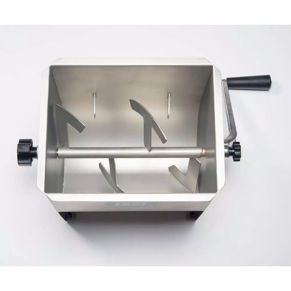 Simply put the seasonings, water and meat into the hopper and turn the handle. Mixes in just minutes. Easy-to-clean and rust resistant.