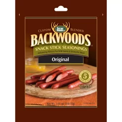 - Comes with cleaning brush, 2 nozzles: 3/16 in. x 1 3/16 in. for jerky strips and a 1/2 in. round for snack sticks and 2 bags of backwoods seasonings: snack stick and original Jerky (makes 5 lbs. each)