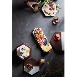 - Fine marble and scratch-resistant wood form a modern hexagon shape that reflects your unique sense of style