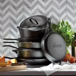7 qt. Seasoned Cast Iron Dutch oven with loop handles and cast iron cover. The Dutch Oven is ideal for slow cooking foods, and the loop handles make it easy to move from the stove top to the oven. The cast Iron Dutch Ovens work great in the oven, on the stove, on the grill or over the camp fire.