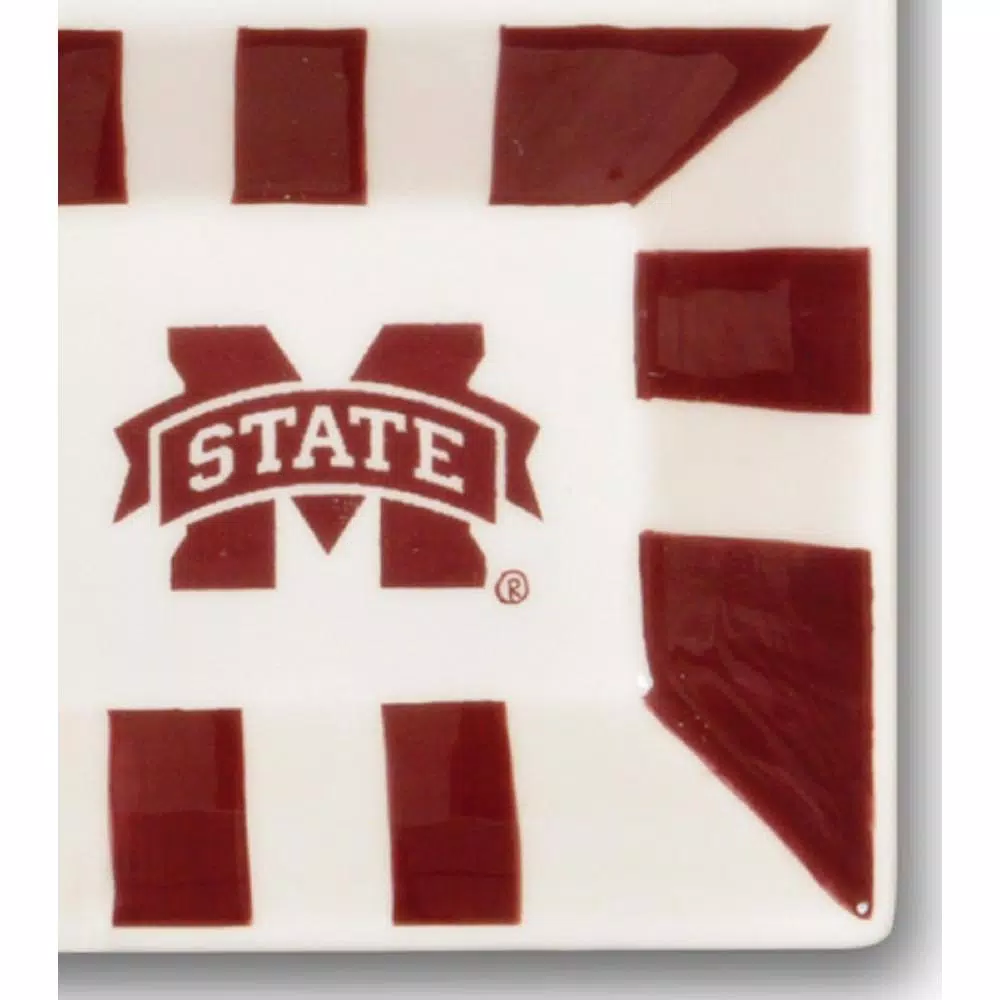 Combine Team Spirit and functionality at your next tailgating party or game day event with this officially licensed NCAA collegiate serving platter. This 4 Section ceramic platter proudly displays your teams name and logo and is playfully decorated with stripes and polka-dots in team colors. The platter features three small sections at the top and a large serving section at the bottom. Great for hors doeuvres, dips, wings, sandwiches, sauces, snacks or desserts.