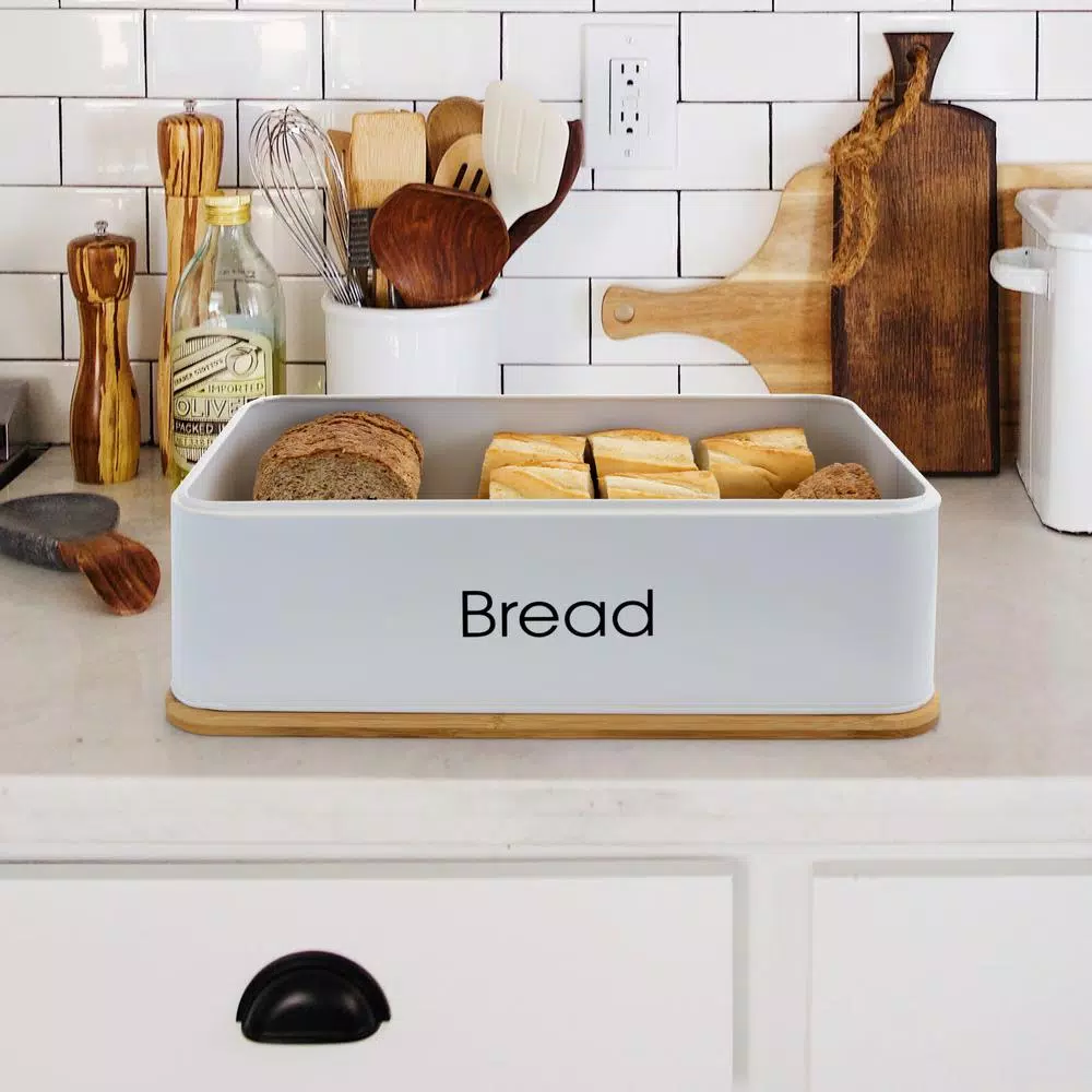 - Reversible Bread Box lid can be used as a cutting board or serving tray