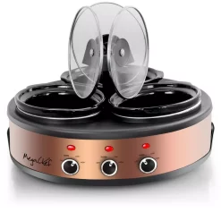 With the New MegaChef Triple 2 Qt. Slow Cooker and Buffet Server in Brushed Silver and Black Finish with 3 Ceramic Cooking Pots and Removable Lid Rests will be your helping hand whenever you need to prepare multiple meals simultaneously without the hustle and bustle of a restaurant kitchen. With this incredible kitchen tool, you will be able to not only cook 3 individual meals at the same time without having to monitor the stove, but you will also be able to keep those meals hot and serve them to your family and friends or guests and coworkers without breaking a sweat. This stunning slow cooker and buffer server features 3 Ceramic 2 Qt. Cooking Pots with their own settings allowing you to control the heat level for each meal you cook. With the included detachable lid rests, your guests can easily serve themselves hassle free. Once you try serving meals with such ease it may be difficult to go without this unit again at any gathering.