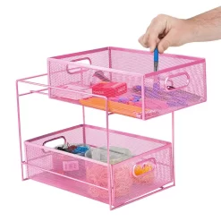 Protect your sink from scratches and provide flat base for your dishes using this Mind Reader Modern Pink Metal Flatware Organizer Utensil Caddy.