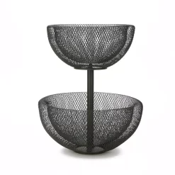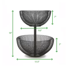 This distinctive fruit basket offers a clever alternative, takes up less space, and encourages healthy eating at home or at your place of business. The unique tiered design of this wire fruit dispenser makes it easy to fill up with fruits of various shapes and sizes on two levels. The unique rounded mesh construction provides durability and proper airflow, making it easy to clean while resisting bacteria and rust. Its creative shape and structure add an artistic flair to your snack table, breakfast buffet, or breakroom, and will have everyone talking. Once emptied, the steel wire mesh is easy to clean with a gentle cleaning solution and soft cloth. Encourage healthy eating by making the Mind Reader wire fruit dispenser an indispensable part of your home or business today.
