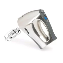 This convenient sleek, speedy hand mixer has a powerful 300W motor that puts professional power in the palm of your hand and can take on almost any mixing task. It has a comfortable soft grip handle for extended mixing, whipping and kneading of your favorite cookie dough, mashed potatoes, whipped cream and so much more. The sixteen speeds with electronic digital led display and simple fingertip control lets you switch between speeds with ease making the task so easy, you can go from the slow stir feature to high whip with just a couple clicks. The built in timer keeps track of how long you are mixing ingredients for your favorite recipes, use to get perfect egg whites. Efficient, lightweight DC motor delivers more power while using less electricity. Digital control with LED display allows you to easily see and adjust the sixteen speeds.