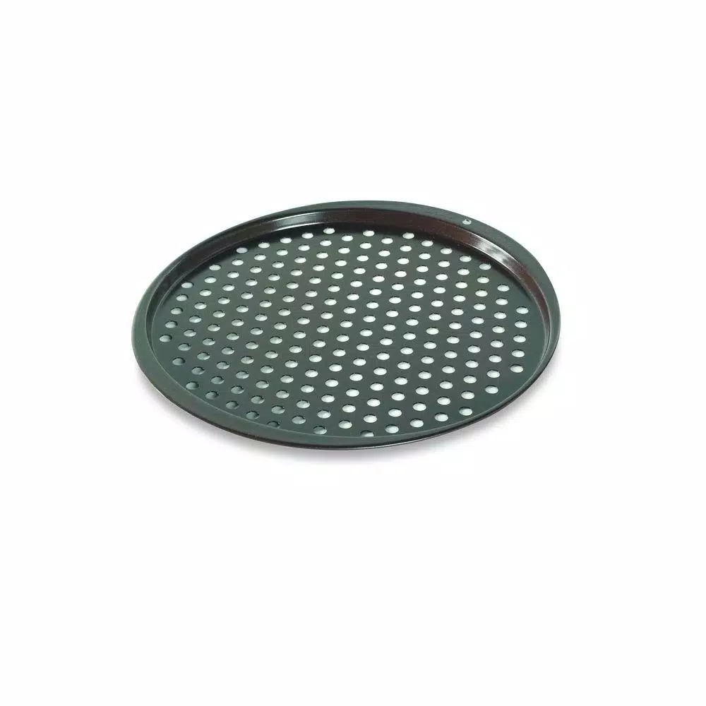 When it comes to making pizza, the grill is fast becoming the preferred method over the oven. Aluminized steel 12 in. Pizza Pan has perforations for smoky-flavor infusion and a crisp crust. Doubles as a grilling/baking sheet for seafood, vegetables and more. Nonstick surfaces means easy cleanup.