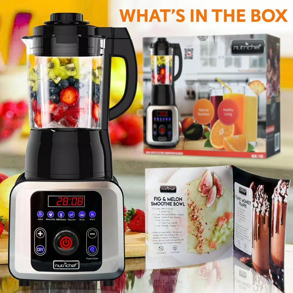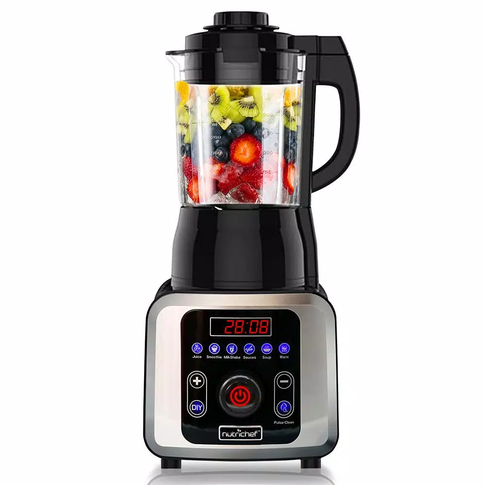 NutriChef was created on the principle that healthy home cooking should be attainable to all, regardless of skill level and economic status. Starting in 2014, we noticed the disconnect in our lives and in the lives of those around us. We were so busy, always rushing forward and our health and personal lives suffered. We needed to find some way to slow down and put our health first, all without sacrificing convenience or taste. Could we somehow create healthier versions of our favorite foods, easily in our own kitchens. The answer was a resounding yes and NutriChef was born. What’s in the Box: Electric Blender, Base Blend Container with Blade, Container Cover, Removable Lid Cap, Food Recipe Book. Technical Specs: High-Powered Blender Motor: 1000-Watt, Blend Speed Settings: Up 26,000 plus RPM, Adjustable Speed Control: 9 Speed Settings: Adjustable Blend Time Setting: Up to 99-Minutes, Adjustable Heat/Temperature Setting: 90°F to 210°F (32°C to 99°C), Blending Cup Capacity: 1400 ml/47 oz. (Hot Food) Blending Cup Capacity: 1750 ml/59 oz. (Cold Food) Noise Operating Level: 90 dB Construction Material: Clear Tritan Blend Container, Engineered ABS Housing, Power Cable Length: 3 ft. Power Supply: 120-Volt, Total Blender Size: 9.3 in. x 8.0 in. x 19.0 in.
