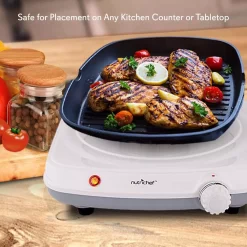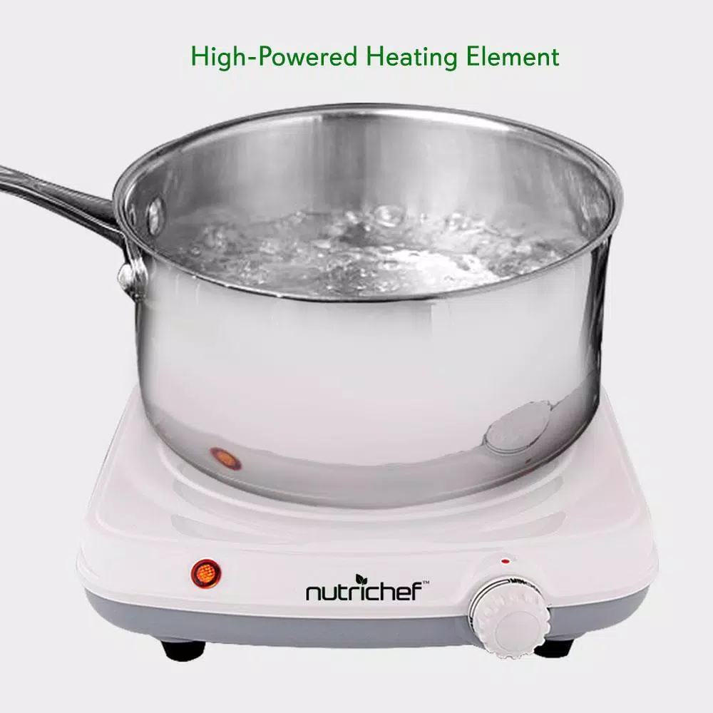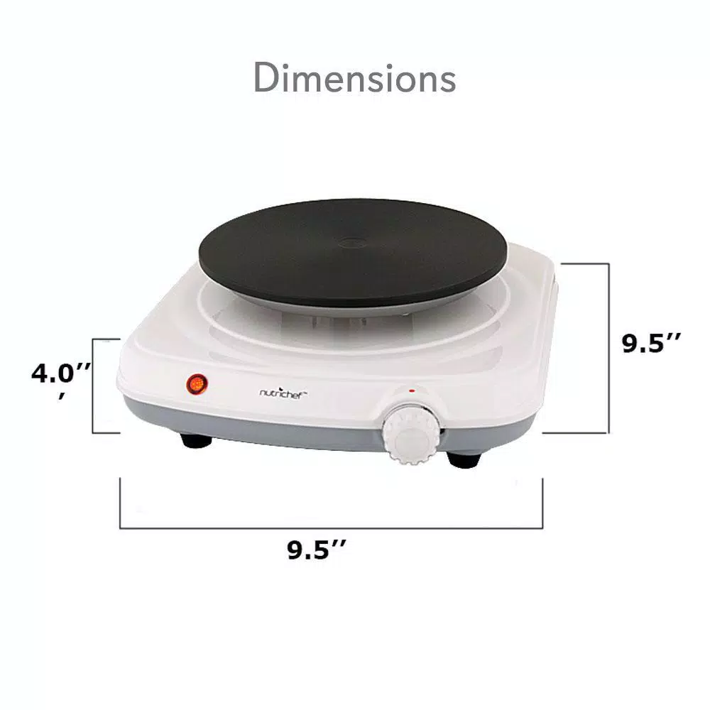 NutriChef was created on the principle that healthy home cooking should be attainable to all, regardless of skill level and economic status. Starting in 2014, we noticed the disconnect in our lives and in the lives of those around us. We were so busy, always rushing forward, and our health and personal lives suffered. We needed to find some way to slow down and put our health first, all without sacrificing convenience or taste. Could we somehow create healthier versions of our favorite foods, easily in our own kitchens? The answer was a resounding yes, and NutriChef was born. Features: – Hot Plate Buffet Burner – Simple Electric Plug-in Operation – Adjustable Temperature Control Setting – High-Powered Heating Element – LED Indicator Light – Food-Grade Stain-Resistant Construction – Safe for Placement on Any Kitchen Counter or Tabletop Technical Specifications: – Heating Plat Size: 7.3 in. Dia. – Construction Material: Carbon Steel, Aluminum Hot Plate – Temperature Range: Maximum Temp: 752 °Fahrenheit (400 °Celsius) – Power Cord Length: 3.2 ft. – Power Supply: 120V – Dimensions (L x W x H): 9.5 in. x 9.5 in. x 4.0 in. –inches