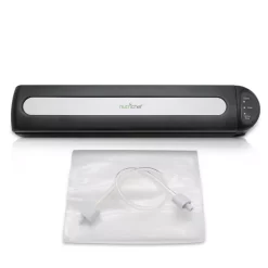 NutriChef was created on the principle that healthy home cooking should be attainable to all, regardless of skill level and economic status. Starting in 2014, we noticed the disconnect in our lives and in the lives of those around us. We were so busy, always rushing forward, and our health and personal lives suffered. We needed to find some way to slow down and put our health first, all without sacrificing convenience or taste. Could we somehow create healthier versions of our favorite foods, easily in our own kitchens? The answer was a resounding yes, and NutriChef was born. What’s in the Box: – Vacuum Sealer – (5) Vacuum Bags (7.8’’ x 11.8’’ -inches) – Vacuum Air Hose Technical Specs: – High-Power Suction Element: 110 Watt – Vacuum/Suction Strength: 12L/min (-0.6 bar) – Vacuum Air Hose Length: 1.3’ ft. – Sealable Bags: Environment Friendly Polyamide – Withstands Food Temperature of 212°Fahrenheit Max. – Construction Material: Engineered ABS, Stainless Steel – *Vacuum Air Hose Connects to NutriChef Vacuum Seal Container Models: PKVSCN1L, PKVSCN2L (Sold Separately) – Power Cable Length: 3.3’ ft. – Power Supply: 120V – Dimensions (L x W x H): 15.75’’ x 3.15’’ x 2.17’’ –inches