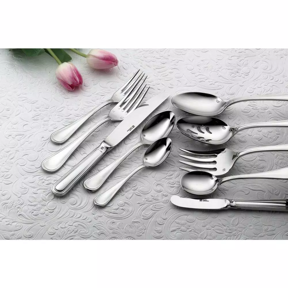 A classic gently curving border reflects timeless elegance. This highly reflective flatware is worthy of the most respected culinary establishments worldwide. Bellini is a versatile design that complements most any fine dining dinnerware.