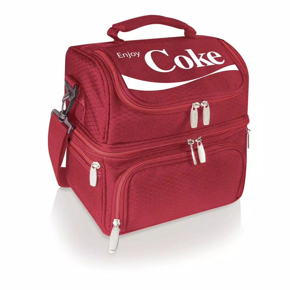 Level up your lunch box game with the Pranzo Personal Cooler, an insulated picnic/lunch cooler for 1 with top and bottom compartments to separate cold foods from warm/room temperature items. This polyester 8-can-capacity picnic bag with an adjustable shoulder strap and grab-and-go handle also has a secret compartment containing stainless steel silverware, frosted glass salt and pepper shakers, and a red 100% cotton napkin. Zippered mesh pockets on each side provide the perfect space for keys, wallets, or UNO cards.