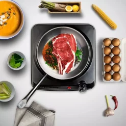 Discover how fast and hassle-free it is to cook meals with the Ovente Electric Single Coil Burner BGC101 Series! Powerful, durable and space saving—these are the words that would describe our electric single coil burner. It has a 6-inch hot plate with durable stainless steel heating tube. It runs on 1000 Watts (120 Volts), which is ideal for efficiently cooking all kinds of dishes. With it, you can pull together all your breakfast favorites and late-night dinners without taking too much time! The burner’s body is made of a durable fire-resistant metal housing that can last you years. It also has non-slip rubber feet that prevent the burner from sliding or slipping on smooth, tiled surfaces. You don’t need to use abrasive cleaning agents to scrub off the dirt, food drippings or oil splatters from the burner. Simply wipe any non-electrical parts with a damp sponge or disinfectant kitchen wipe. Then, dry it with a soft cloth. Other Key Features: • Adjustable temperature control • Indicator light