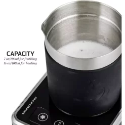 OVENTE introduces the stainless steel milk frother with smart Touch that delivers hot, cold, extra foamy froth and fast and efficient heating for milk, water or for hot chocolate. Made with high grade double-wall stainless steel, its well-insulated carafe maintains the beverage temperature but is also dishwasher safe for easier cleaning. It features an induction base for faster heating and frothing and comes with 2 BPA-free magnetic whisks that fit into the milk frother with ease. The base has a magnetic driven base with integrated cord storage. Its built-in auto shut-off feature turns the milk frother off after use or when there is no liquid inside the carafe. It’s so powerful that it comes equipped with a 600-Watt heating element for rapid heating and frothing. It also is backed by Oventes 1-year limited warranty, so snag yours now risk-free. Smart Touch features: hot froth cold froth hot chocolate/milk/water warmer Capacity: 7 oz. for frothing 14 oz. for heating OVENTE makes it easy to add a special little something extra to your hot or cold beverages. In just 1 touch, You can enjoy warm, frothed milk in your hot chocolate, tea and Coffee or cold frothed milk for your iced Coffee and milkshakes.