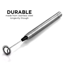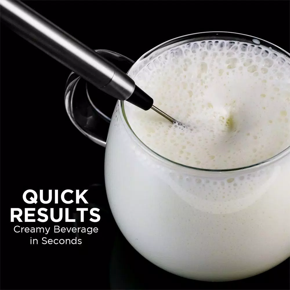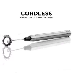 - Battery operated – it’s powered by 2 AAA batteries that can run for hours. This handheld electric milk frother is super simple to use! It can do the job without the burden of knotted cords. Good riddance! This little baby may be small, but in no way does that compromise its efficiency.