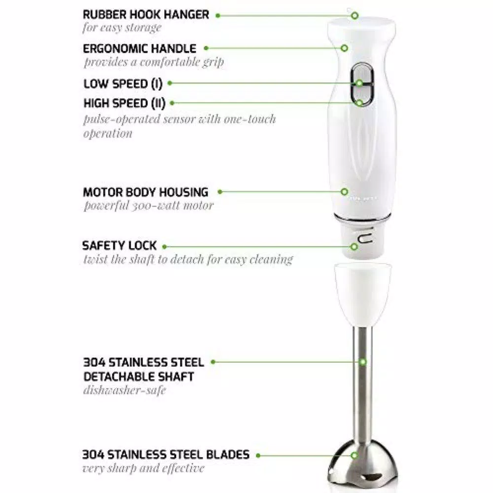 - Endless home-made delights with one hand blender get the perfect consistency and texture for your salsas, cappuccinos, soups, smoothies, and pastries. Its blades are made in premium 304-grade stainless steel thats razor sharp it can mix, froth, crush, and blend different recipes according to the consistency you want