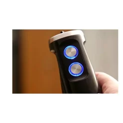 - Sleek and ergonomic its built with a sleek, ergonomically-designed, nickel-brushed stainless steel body with a non-slip and easy-to-grip handle that gives you comfortable and sturdy control over the blender. Also includes a hook hanger for easy storage