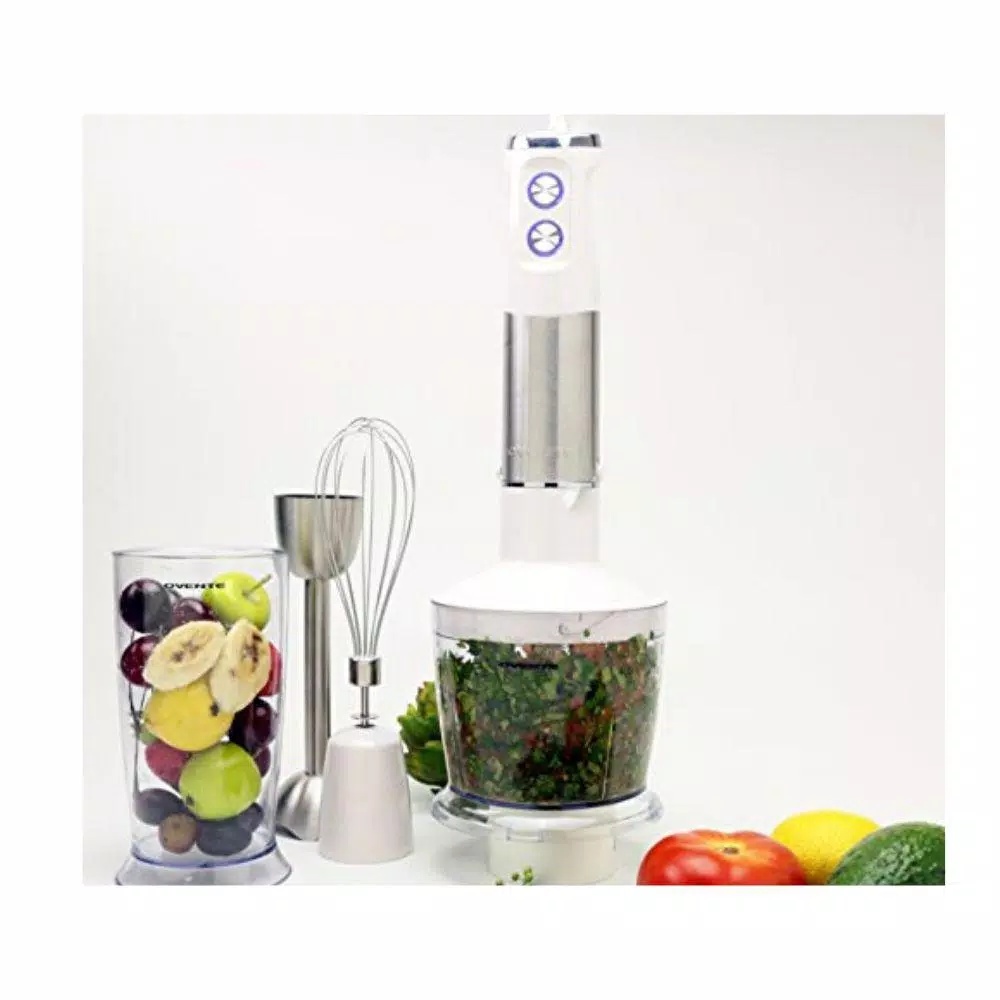 Discover a new world of innovative cooking possibilities with the Ovente HS685 Handheld Immersion Blender. It makes blending and mixing any soft foods a pleasure because it makes it SO easy and effortless. Its lightweight body (3 lbs.) along with its ergonomically-designed, non-slip handle is so comfortable to hold and control that cooking won’t ever feel like a chore again. Whip up all of your favorite gourmet soups, guacamole, smoothies/shakes, cake batter, sauces, marinades, salad dressings, or even homemade baby food for your precious bundle of joy with one press of a button This set also comes with BPA-Free and dishwasher-safe attachments: a stainless steel mixing stick, a stainless steel egg whisk, a food chopper attachment, and a heavy-duty Tritan beaker (20.3 oz./600 ml.) with cup measurements. These attachments are all super versatile, useful, convenient in the kitchen and help you to create endless cooking/blending possibilities even better and quicker than before! Powered by 500-Watts and a heavy-duty motor, it works quickly and effectively expertly mixing anything you desire into a smooth, evenly-mixed medley of mouth-watering flavors. Its Slim-Stick design enables this hand blender to fit into any mixing bowl, pot, beaker, or cookware without restriction. It’s compact enough to fit anywhere but powerful enough for the toughest blending jobs. It was also carefully designed to come apart easily so that cleanup and storage is no problem.