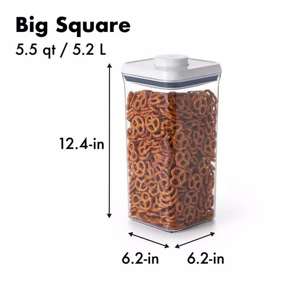 - 5.5 Qt. container is the ideal size for bulk cereals, pretzels, chips and more