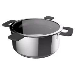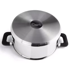- Each pot boasts a brushed interior, polished mirror exterior, and a magnetized impact-bonded base for unrivalled heat conductivity and use on induction stoves