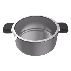 - Uniquely fitted lids made of tempered glass, each with a steam-release vent and 2 heat-resistant silicone-coated handles
