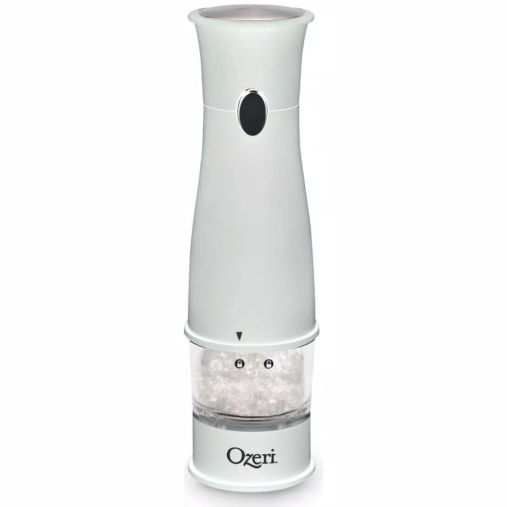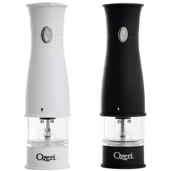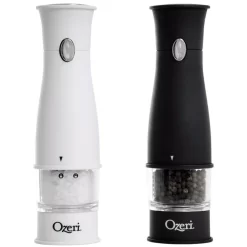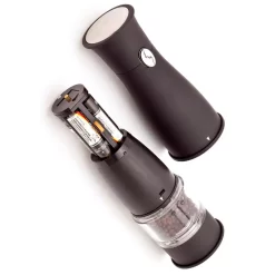 The Artesio Electric Salt and Pepper Grinder Set is the ultimate accompaniment to any dinning setting where a touch of fresh salt and pepper goes a long way. Designed to operate effortlessly, each Artesio grinder combines an adjustable ceramic grinding burr mill with battery-power for push-button easy dispensing of salt or pepper. Marketed almost exclusively by word of mouth, these battery powered grinders consistently win applause with their ability to grind salt and peppercorns. The Artesio Electric Salt and Pepper Grinders each boast an ultra-soft non-slip grip, a built-in light for low-lit dining ambiances, BPA-Free material, and durable construction. The Artesio Grinders require no assembly, and each runs on 4 AA batteries (not included).