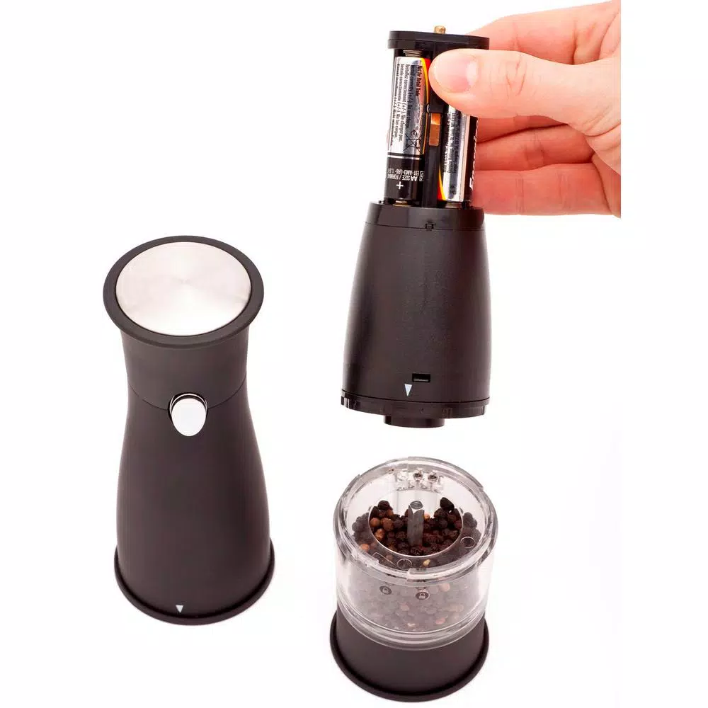 - Battery-powered for push-button easy dispensing of salt or pepper, with a see-through container makes monitoring salt and pepper levels easy.