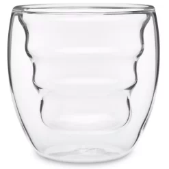- Set of 4-handmade, double-wall thermo glasses, each glass boasting a unique curvature that holds 8 oz.