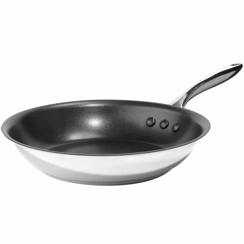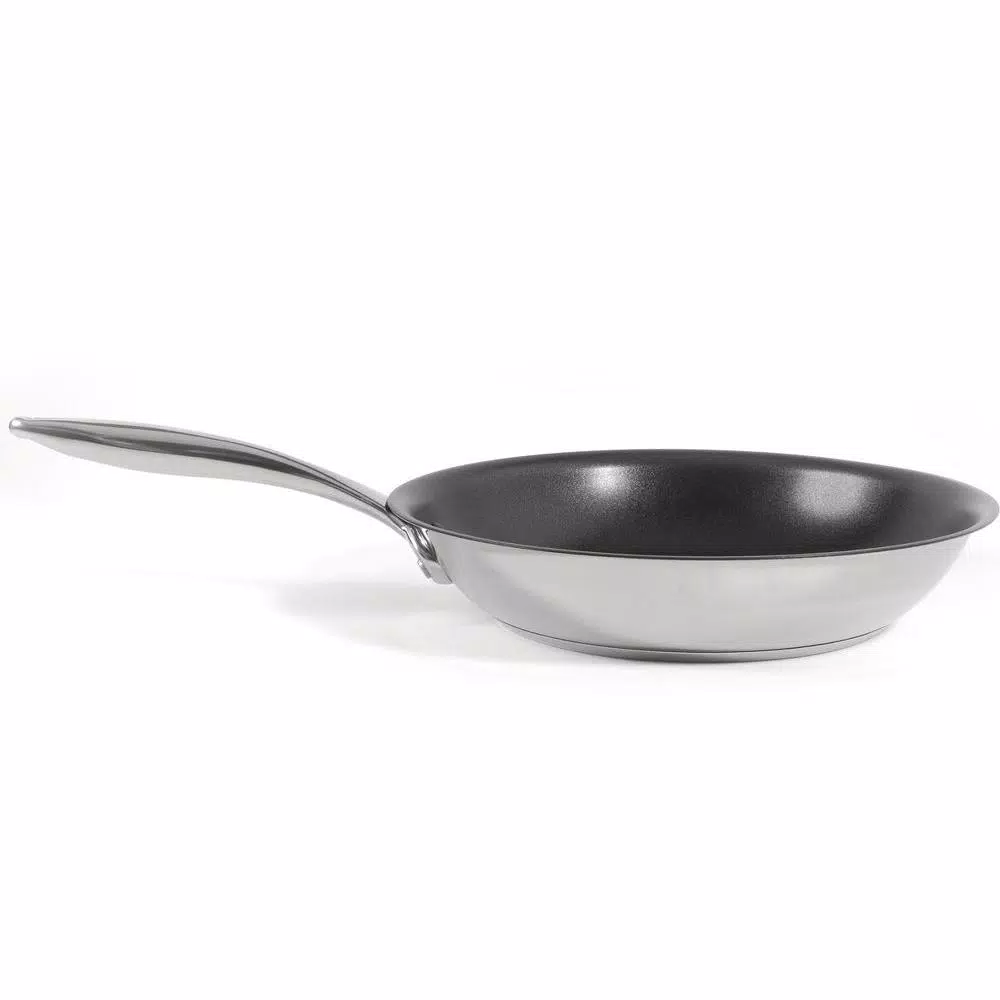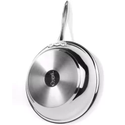Featuring ETERNA, a safe and durable non-stick coating developed, the Stainless Steel Earth Pan by Ozeri is the world’s first stainless steel frying pan to achieve non-stick perfection without using PFOA, a harmful chemical often found in traditional cookware. With the Stainless Steel Earth Pan’s ETERNA coating, even under high temperatures, no controversial per fluorinated chemicals are ever released into the environment. It boasts a magnetized bottom for rapid heat transfer on induction stoves and a polished mirror exterior.