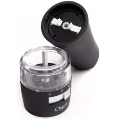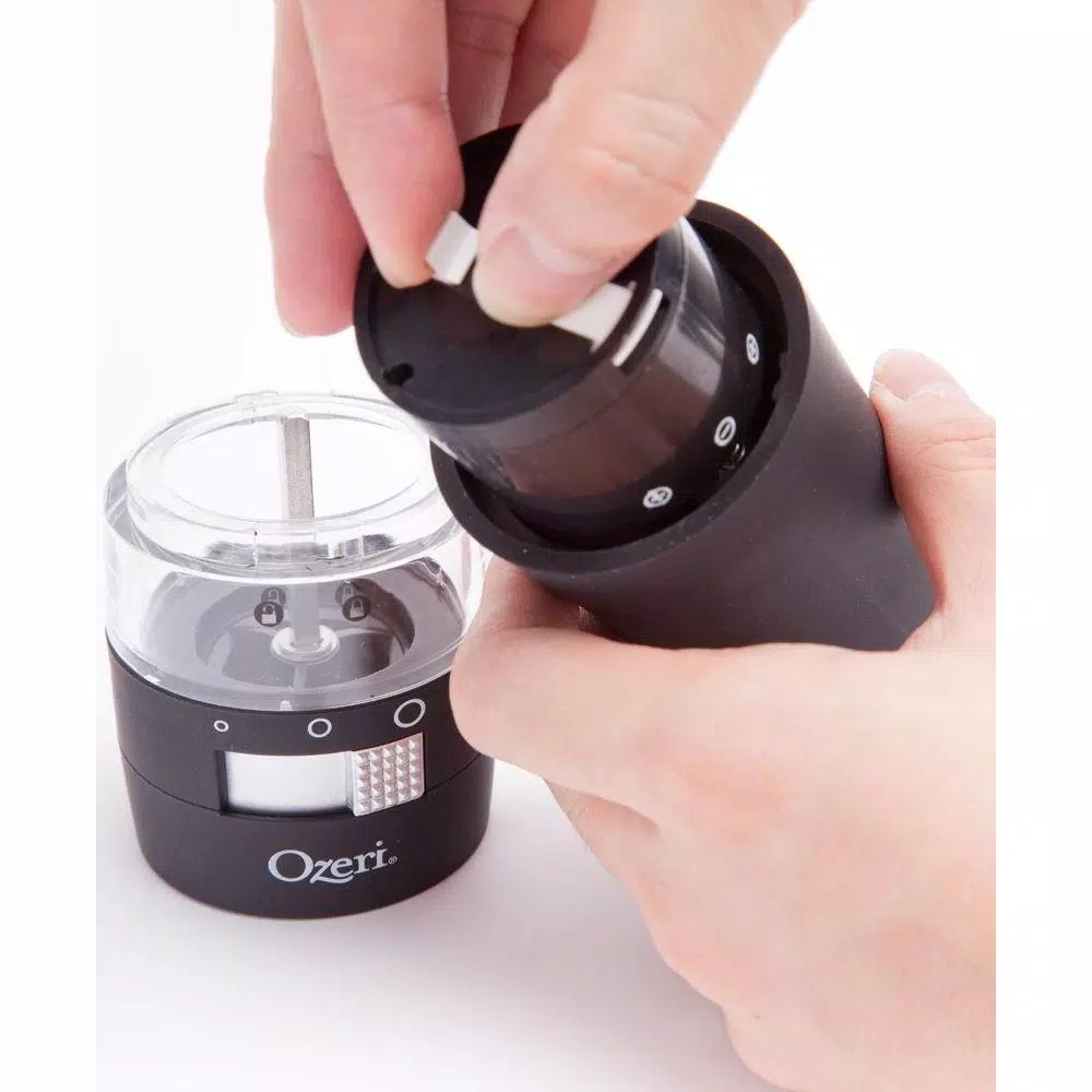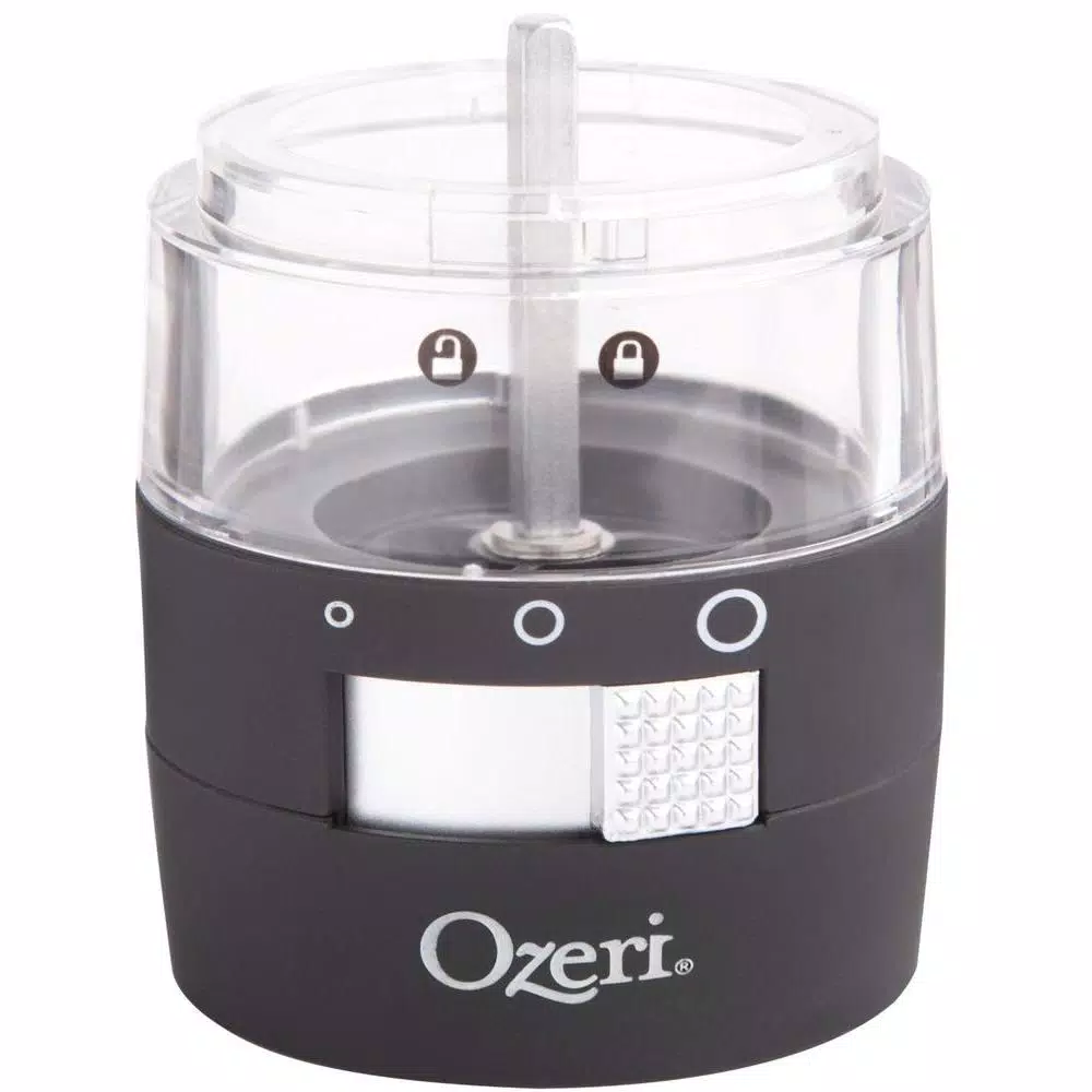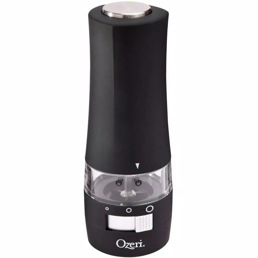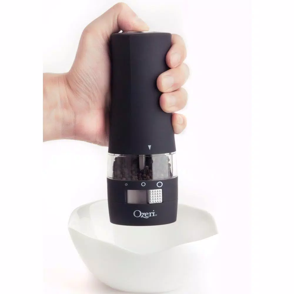 The most advanced Electric Pepper Grinder offered, the new Ozeri Savore features a new front-side adjustable ceramic grinding mechanism with 3 preset grind levels so that you never have to invert your grinder again. The Ozeri Savore Electric Grinder is the ultimate accompaniment to any dinning setting where a touch of fresh pepper (or salt) goes a long way. Designed to operate effortlessly, the new Savore combines a new front-side adjustable ceramic switch with a battery powered motor for push-button effortless dispensing of pepper (or salt). Marketed almost exclusively by word of mouth, the battery powered Savore consistently wins applause with its ability to grind peppercorns, salt and spices. The Savore Electric Grinder by Ozeri also boasts an ultra-soft non-slip grip with a finger-print resistant coating. The Savore requires no assembly, and runs on 6 AAA batteries (not included).