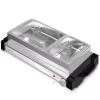 Heavy-duty 20-Gauge stainless steel construction makes The Dog Hut the most durable steamer and it accommodates up to 200 hot dogs and 42 buns. Removable product trays and sliding doors allow for easy access to hotdogs and buns and makes for simple easy clean up. The proprietary heating system featuring heavy-duty submersible stainless steel element and automatic shutoff feature when water gets below a certain level. The oversized eight quart water reservoir is the largest available for extended holding times. Plus, the quick turn water release valve eliminates burned fingers and spilled water.The divided hot dog tray accommodates any size hot dogs and sausages and allows for various sizes of hot dogs or sausages to be cooked and merchandised simultaneously. One year parts warranty.