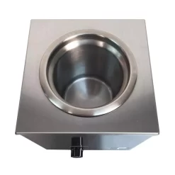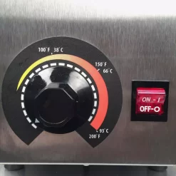 The Pro-Deluxe warmer comes with vegetable insert jar, one ounce ladle and lid. Features a stainless steel body, lighted master On/Off toggle switch and it uses a 500-Watt band element with an adjustable thermostat to keep your toppings at perfect temperature all day long. Ideal for use in convenience stores, concession stands, vending carts, break rooms, restaurants, snack bars, ice cream shops, cafeterias and more. Heats up to 200°F and is great for nacho cheese, caramel, fudge, soups, sauces, chili or almost anything else that needs to be heated. Includes 1 oz. ladle, stainless steel vegetable jar and lid. ETL tested and approved to UL 197 and NSF-4.