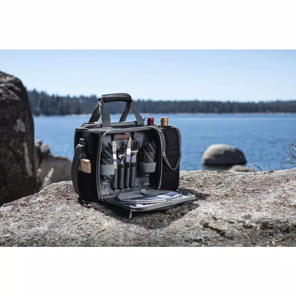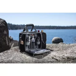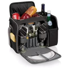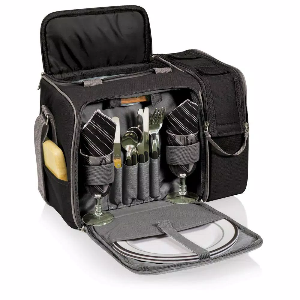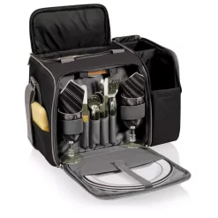 The Malibu is the most convenient go-anywhere picnic pack you can find. Fully insulated, it’s made of 600D polyester and comes with deluxe picnic service for two. The Malibu features an insulated and divided wine section for two bottles and a removable water-resistant liner in the food storage area. Its amenities include: 2 plates (melamine, 9″), 2 wine glasses (acrylic, 8 oz.), 4 napkins (100% cotton, 14″ x 14″), 2 (18/0) stainless steel forks, knives, and spoons, 1 hardwood cutting board (6″ x 6″), 1 stainless steel cheese knife with wooden handle, and 1 stainless steel waiter-style corkscrew. The Malibu is great for the beach, concerts, and casual picnics.