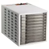 Dehydrate fruits, vegetables, herbs and spices, as well as make great-tasting jerky and fruit rolls. This deluxe digital dehydrator includes six drying trays, expandable to 12 trays for added drying capacity. The drying trays nest when not in use for over a 40% reduction in storage space. Dehydration maintains natural vitamins and minerals-with no additives or preservatives. Make homemade jerky using your choice of meat, poultry, or seafood. Includes starter packs of jerky spice and cure. Also included are two Fruit Roll Sheets for making healthy fruit rolls and strips from fresh, frozen, or canned fruit and two Non-stick Mesh Screens for drying small and sticky foods. The digital timer and thermostat provide precise drying times and temperatures that range from 90¡ to 165¡ F. The Bottom mounted fan and heating element provide consistent air flow for optimum drying with no tray rotation necessary. A See through cover on the top tray lets you monitor drying progress. Drying trays and cover are fully immersible and dishwasher safe. Accessories sold separately. Additional Drying Trays, Fruit Roll Sheets, Non-stick Mesh Screens and Jerky Seasoning sold separately. Jerky Gun is also available.