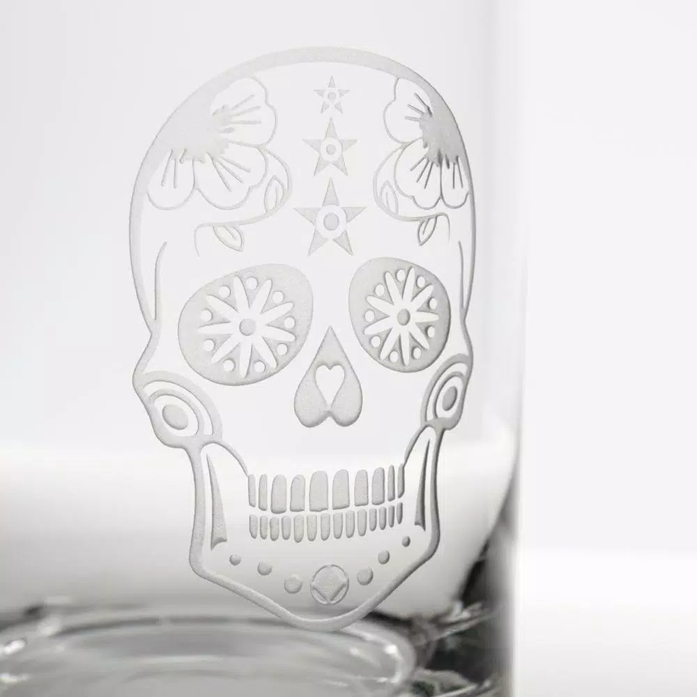 The sugar skull has long been synonymous with Mexico and their Dia de los Muertos or Day of the Dead celebrations. Sugar skulls are meant to be unique and embody the spirit of the loved one they represent who has passed on. Deeply sand-etched to produce a stunning image. This glassware is perfect any time of year to help you toast to a life worth living.
