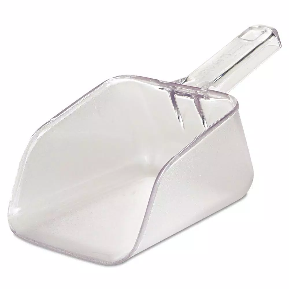 Food service scoop features a smooth surface for easy cleaning. The utility scoop is dishwasher-safe and made from clear polycarbonate construction, which makes it durable, break-resistant, and resists oil and grease. 32 oz. Utensils Type: Scoop; Material(s): Polycarbonate; Color(s): Clear; Length: 10 4/5″.