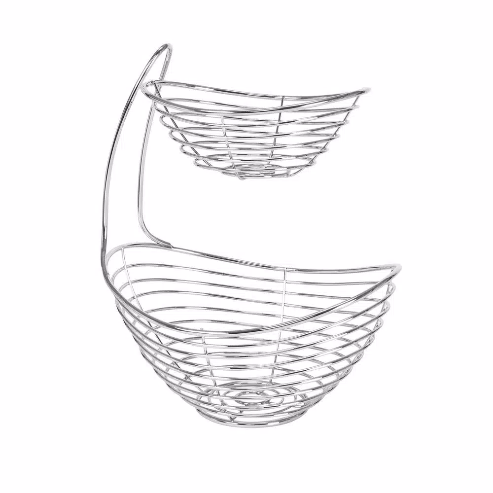The Opus Arched 2-Tier Server keeps a fresh assortment of your favorite fruits and vegetables in one convenient location. 2-open bowls allow fruits and veggies to ripen evenly while offering quick and easy access to stored items. The contemporary oeuvre construction will add an artistic flair to any kitchen. Made of sturdy steel.
